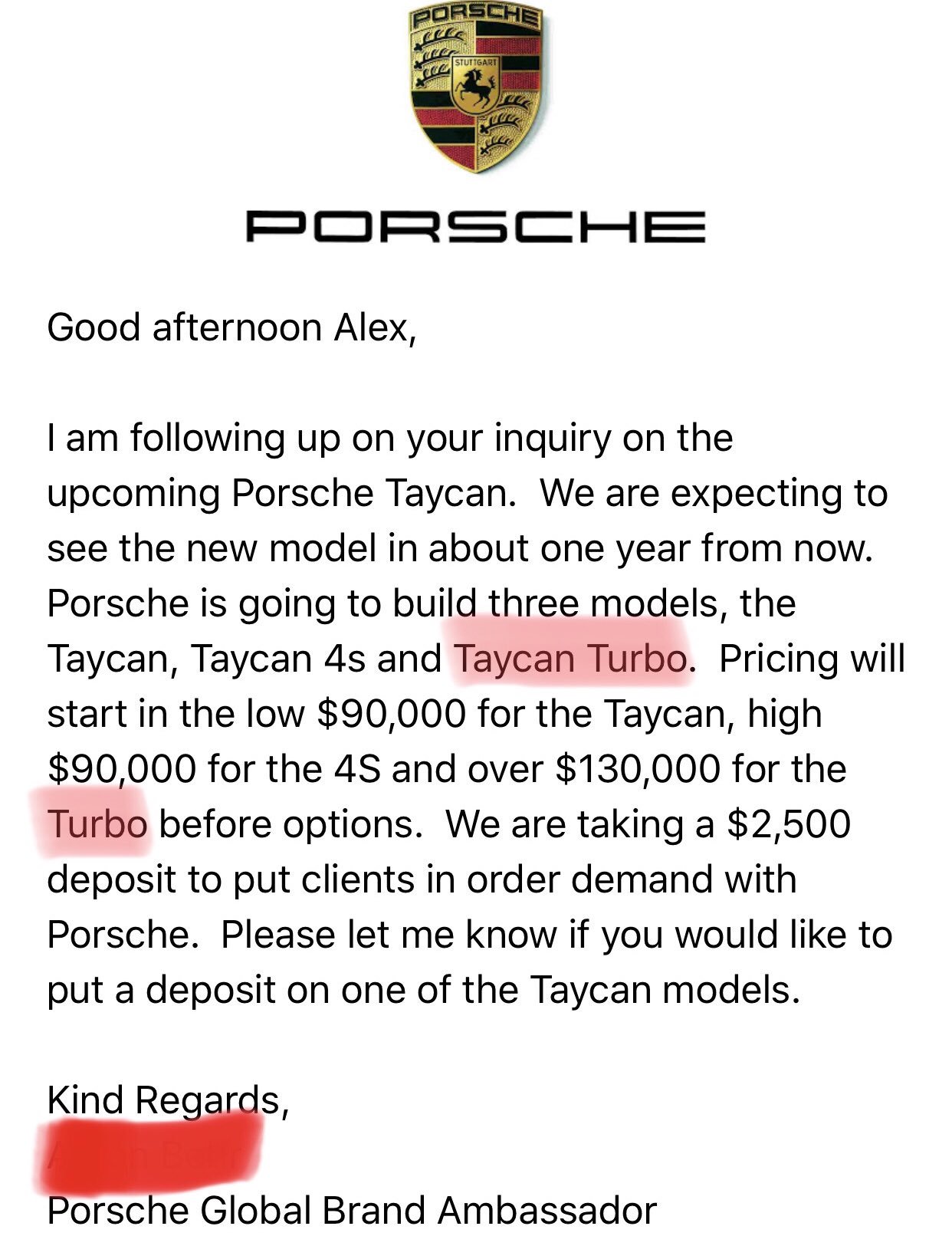 Taycan, low $90.000.